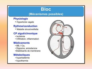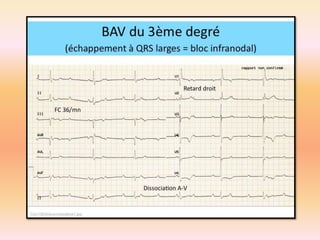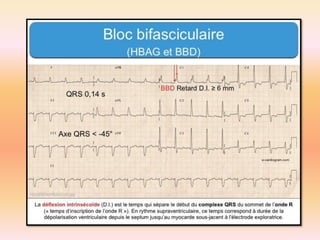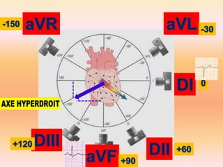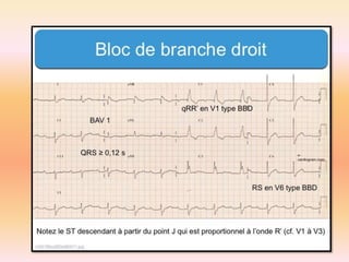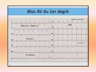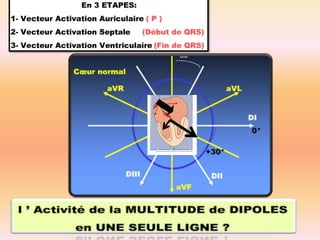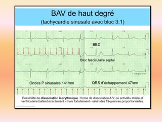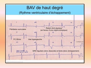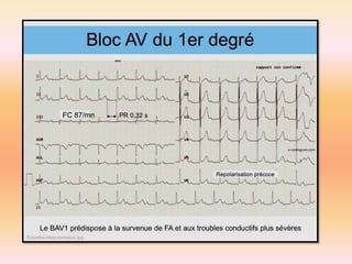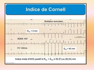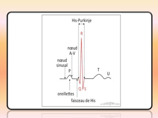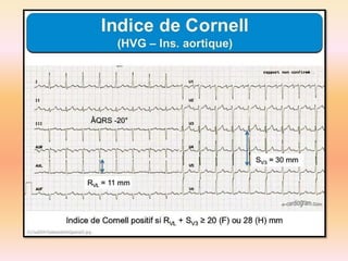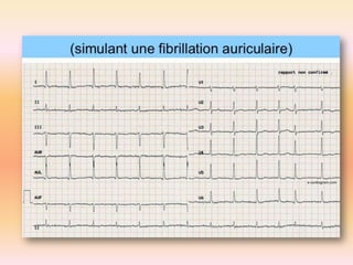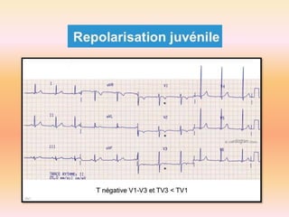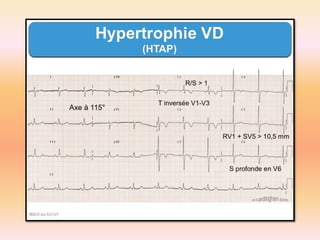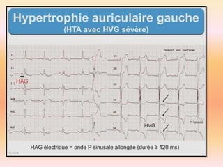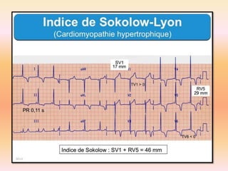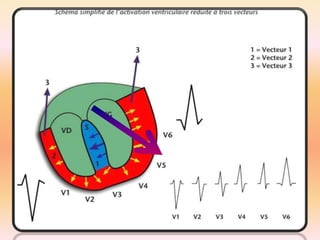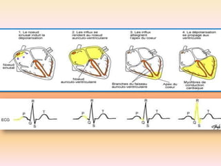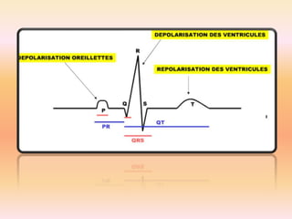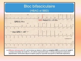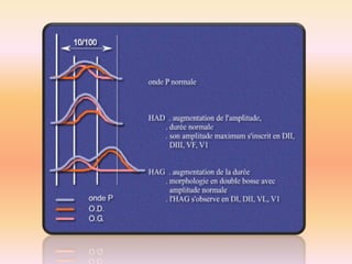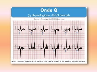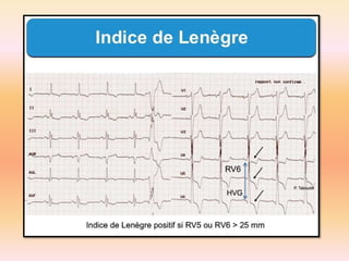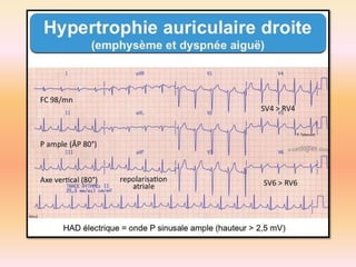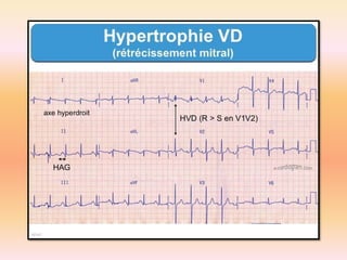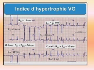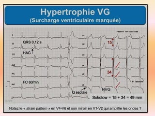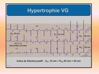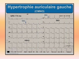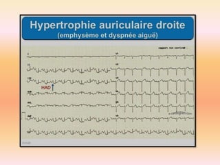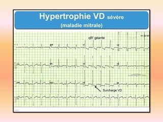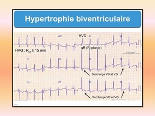 L'électrocardiographie (ECG) est un examen non invasif permettant de visualiser l'activité électrique du cœur, dont l'interprétation nécessite une certaine expertise. Le document traite des bases physiologiques de l'ECG, des classifications des ondes et intervalles, ainsi que des pathologies cardiaques associées, telles que les différentes formes d'hypertrophie et les troubles de conduction. Il souligne l'importance d'une analyse minutieuse des tracés ECG et des implications cliniques associées aux variations des ondes cardiaques.
