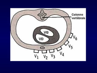 Ce document traite des bases de l'électrophysiologie cardiaque, y compris le potentiel d'action des cellules myocardiques, leur excitabilité, automatisme, conductivité et contractilité. Il décrit le fonctionnement et l'interprétation de l'électrocardiogramme (ECG), incluant les différentes dérivations utilisées, les techniques d'enregistrement et la lecture de l'ECG pour évaluer le rythme cardiaque et les anomalies. Enfin, il aborde les caractéristiques des différentes ondes et intervalles mesurés lors de l'enregistrement ECG.