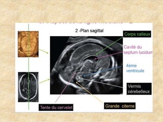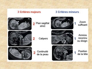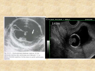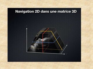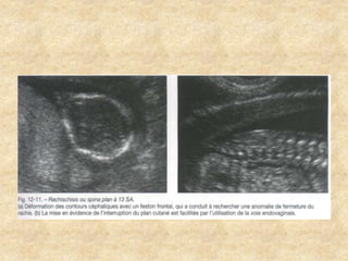 L'échographie en obstétrique est essentielle pour la surveillance de la grossesse, permettant un diagnostic, un pronostic et une évaluation thérapeutique tout au long de la gestation. Le document décrit les techniques, l'évolution historique, les conditions d'examen et les informations clés à recueillir lors des échographies effectuées au premier, second et troisième trimestre. Il aborde également les anomalies morphologiques et les critères de dépistage utilisés pour assurer la santé fœtale.