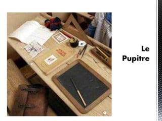 Le document décrit le système éducatif français de l'école primaire à la fin du 19e siècle, mentionnant des aspects tels que l'obligation scolaire, les leçons de morale quotidiennes et l'organisation des cours. Il détaille également la vie des écoliers, les fournitures scolaires, les jeux d'enfants et l'uniforme, soulignant l'importance de l'instruction civique et des valeurs morales. Enfin, il évoque la rigueur de l'enseignement, les récompenses et le rôle de l'instituteur dans la formation de bons citoyens.