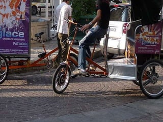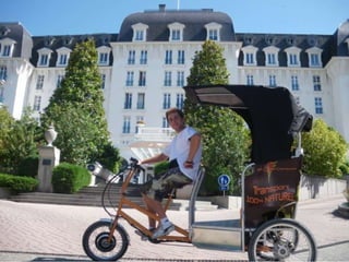 Le document présente une solution de triporteurs à assistance électrique pour des visites touristiques. Il met en avant l'importance de la communication autour de cet événementiel. Les informations peuvent être consultées sur le site www.eco-triporteur.com.
