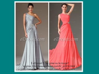 Le document présente une collection de vêtements de la marque edressit, en mettant l'accent sur différentes options de couleurs et de styles, notamment symétriques et asymétriques. Chaque section inclut des liens vers des produits spécifiques pour aider les clients à faire leur choix. Les nouveautés de 2014 sont particulièrement mises en avant, avec des options pour chaque préférence de style.