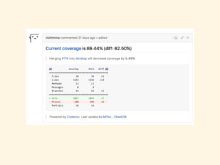 Le document discute de l'importance de l'automatisation dans l'ingénierie de la productivité, soulignant des avantages comme la cohérence, des réparations plus rapides et des économies de temps. Il mentionne des outils et technologies tels que Kintone, GitHub, et Jenkins pour soutenir cette automatisation. Le meet-up se concentre sur la valeur ajoutée de ces technologies B2B dans des environnements de développement continue.