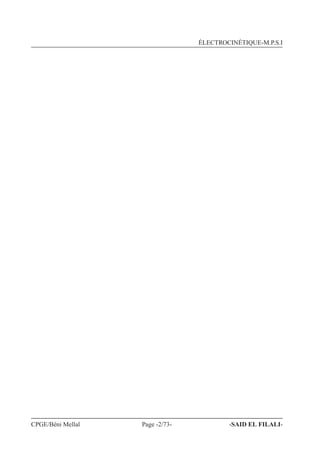 Le document est un cours de physique sur l'électrocinétique pour les classes préparatoires, abordant des thèmes tels que les lois fondamentales, la modélisation des circuits, les théorèmes de base et les régimes transitoires. Il couvre également l'impédance, les circuits RLC et les filtres du premier ordre. Les contenus sont organisés en sections détaillées avec des définitions et des applications pratiques.