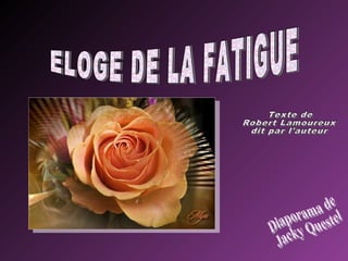 L'auteur exprime sa fatigue non pas comme un fardeau, mais comme une badge d'honneur lié à son engagement et à ses responsabilités envers les autres. Il défend l'idée que la fatigue résultant d'une vie consacrée aux autres est une preuve de vitalité et de sens, et non un signe de déclin. Ainsi, il préfère cette fatigue enrichissante à une existence morose et vide.