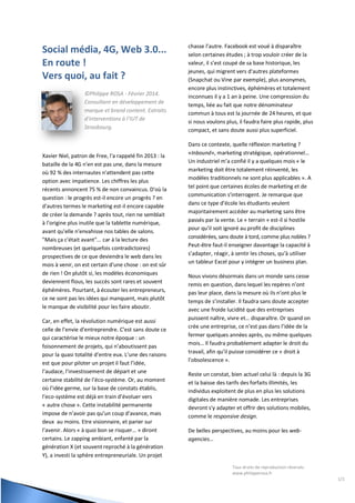 Le document aborde les défis actuels du marketing à l'ère numérique, soulignant que la demande pour des technologies comme la 4G est diminuée et que l'entrepreneuriat est confronté à une instabilité constante de l'écosystème. Malgré une profusion d'idées, peu de projets aboutissent et il devient essentiel de réinventer les approches marketing traditionnelles face à une réalité changeante. Enfin, le passage à des solutions nomades et digitales est inévitable pour les entreprises, qui doivent s'adapter à ces nouvelles attentes.