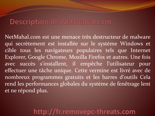 netmahal.com est un malware dangereux qui cible les systèmes Windows et perturbe les activités des utilisateurs en ralentissant les performances et en injectant des programmes malveillants. Les infections peuvent être identifiées par divers symptômes, tels que des alertes frauduleuses et des ralentissements du système. Deux méthodes de suppression sont possibles : manuelle et automatique, la méthode automatique étant recommandée pour sa simplicité et sa sécurité.