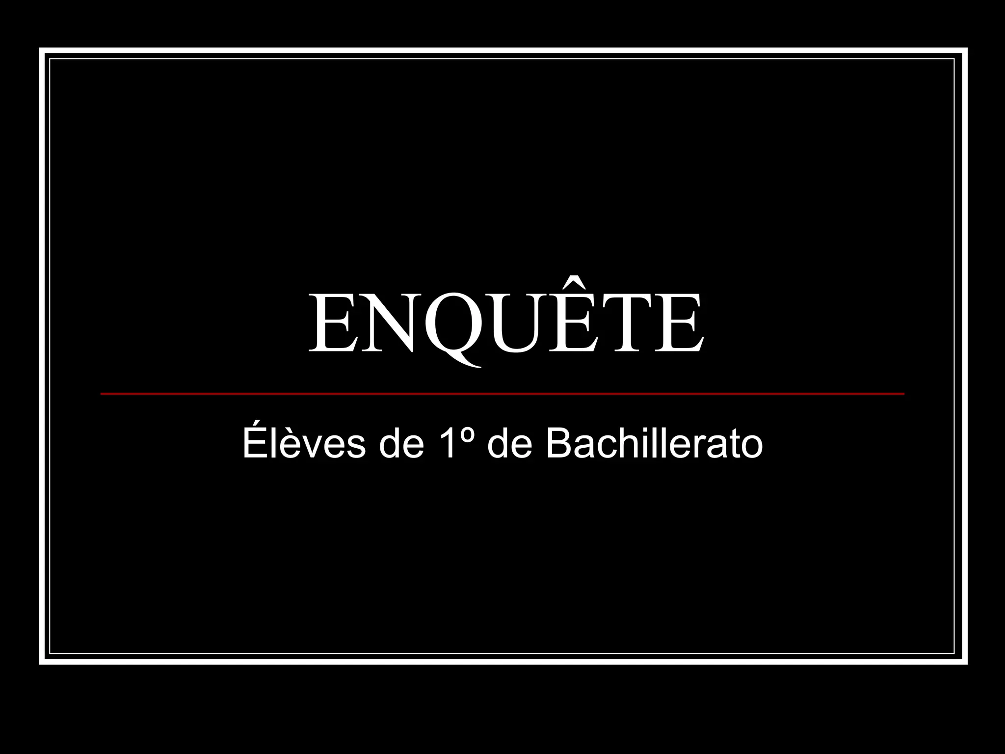 Le document présente une enquête destinée aux élèves de 1ère année de bachillerato sur divers sujets, y compris les relations sexuelles avec ou sans préservatif, les préférences personnelles comme les instruments de musique et les matières scolaires. Il a été créé par un groupe d'étudiants. Cette enquête vise à comprendre les comportements et les opinions des jeunes dans le cadre scolaire.