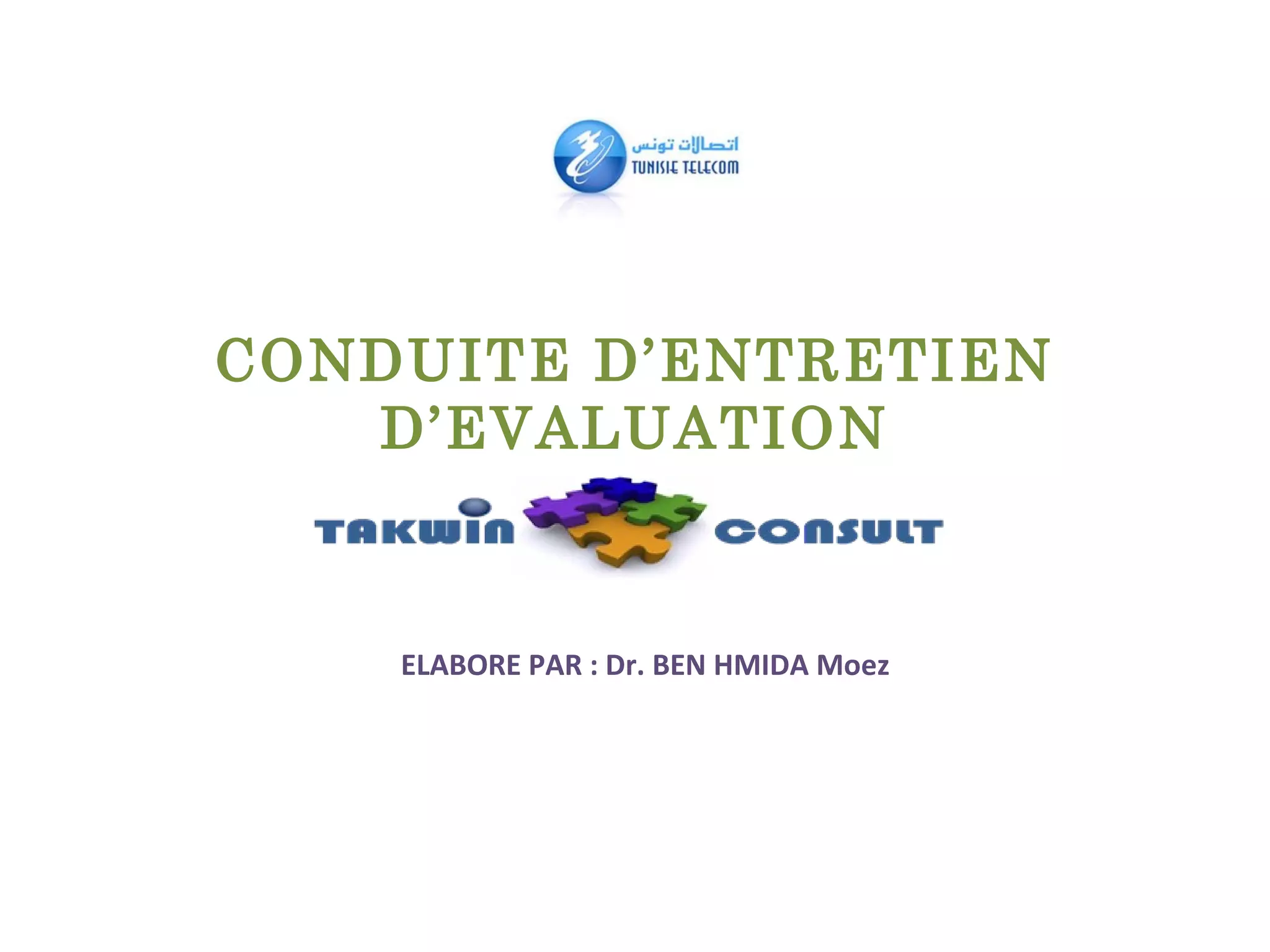 Le document présente un guide complet sur la conduite d'un entretien d'évaluation, comprenant sa définition, son processus, sa préparation et son déroulement. Il souligne l'importance de cet entretien pour améliorer la qualité du travail, permettre un feedback, et établir des objectifs de progression pour le collaborateur. Les différentes étapes de l'entretien sont détaillées, ainsi que les craintes et objections que peuvent avoir les collaborateurs.