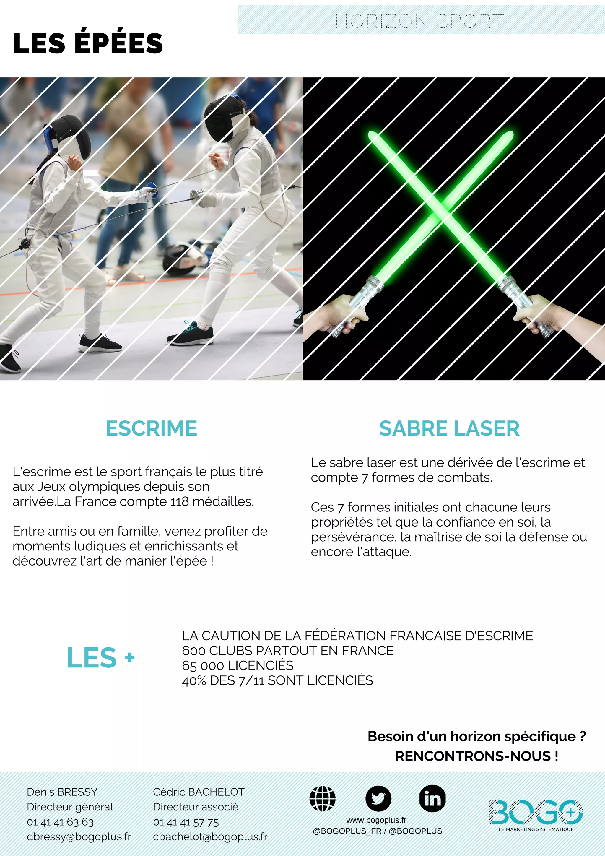 L'escrime est le sport français le plus titré aux Jeux Olympiques avec 118 médailles. Le sabre laser, dérivé de l'escrime, propose 7 formes de combat favorisant des qualités comme la confiance et la persévérance. La Fédération Française d'Escrime soutien 600 clubs en France, accueillant 65 000 licenciés, dont 40% sont des enfants de 7 à 11 ans.