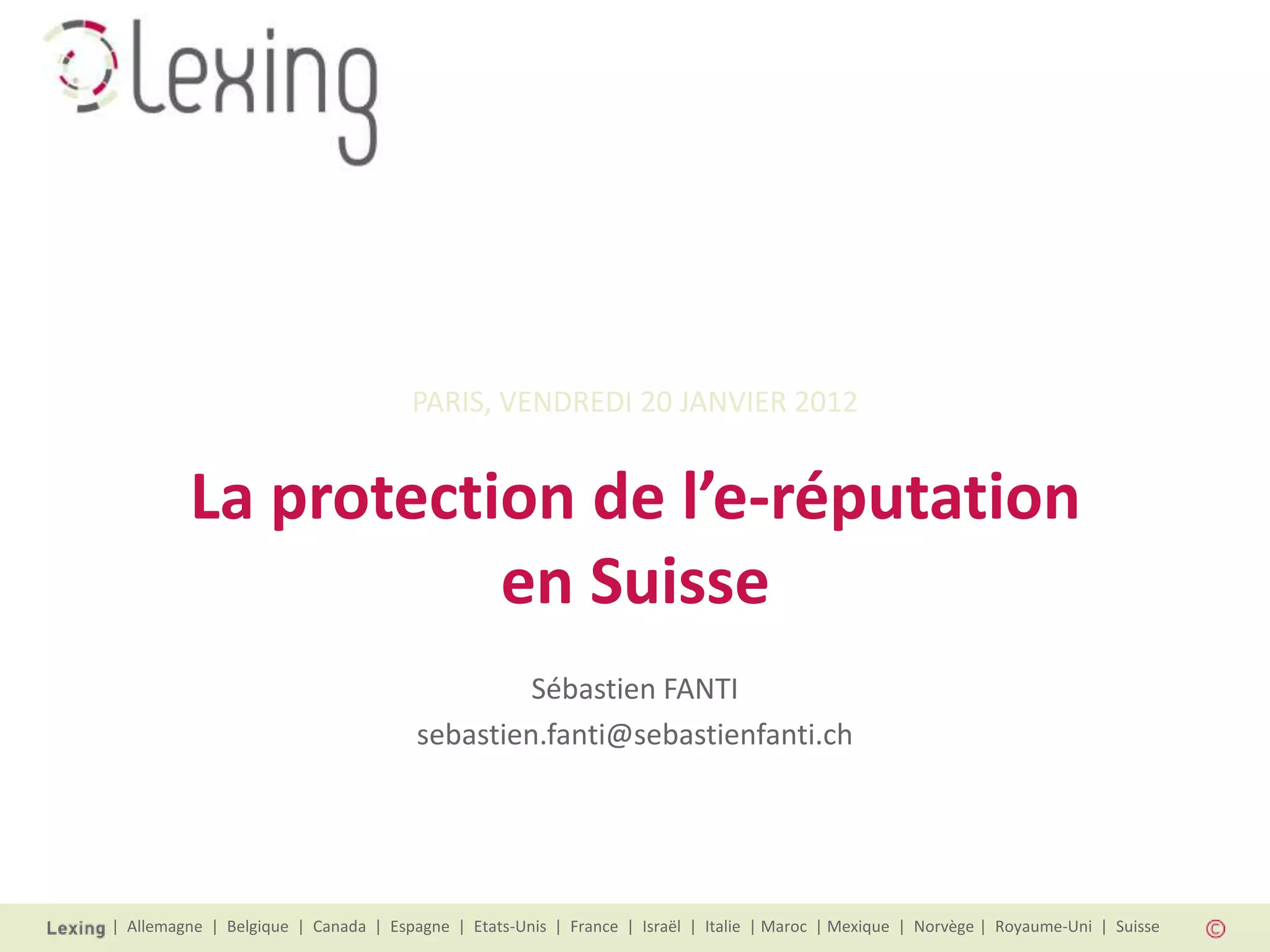 Ce document aborde la question de l'e-réputation en Suisse, incluant les aspects légaux en matière de diffamation et calomnie. Il décrit les lois applicables, les défis liés à la protection de l'honneur en ligne, ainsi que des conseils pour préserver une bonne e-réputation. Plusieurs recommandations sont également données pour gérer et optimiser son identité numérique.