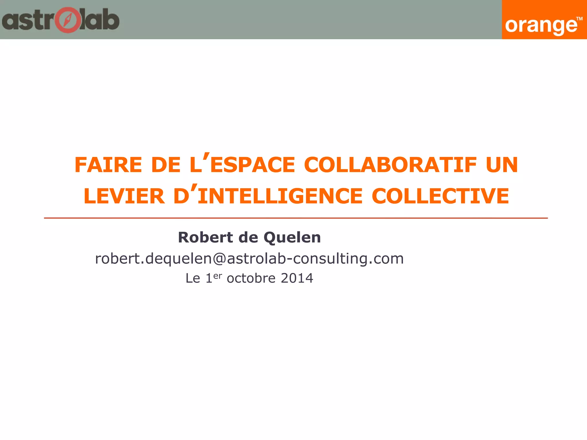 Le document explore l'espace collaboratif comme levier d'intelligence collective, mettant en avant l'importance du bien-être au travail, de la collaboration étendue, et des nouvelles tendances comme le design thinking. Il souligne la nécessité d'adapter les espaces de travail pour favoriser la créativité et l'échange entre les collaborateurs, tout en intégrant les attentes des générations actuelles. La co-création avec les clients et une approche axée sur l'expérience sont essentielles pour la transformation des entreprises.