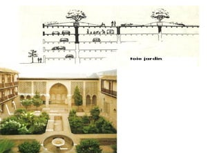 Le document traite de différents styles et techniques de jardins historiques à travers le monde, notamment en France, en Espagne et au Japon. Il explore l'importance de la planification des espaces verts dans l'urbanisme moderne et les interactions entre ces espaces et leur environnement. Les principes de composition et les perceptions humaines sont également abordés pour optimiser l'esthétique et l'harmonie des jardins.