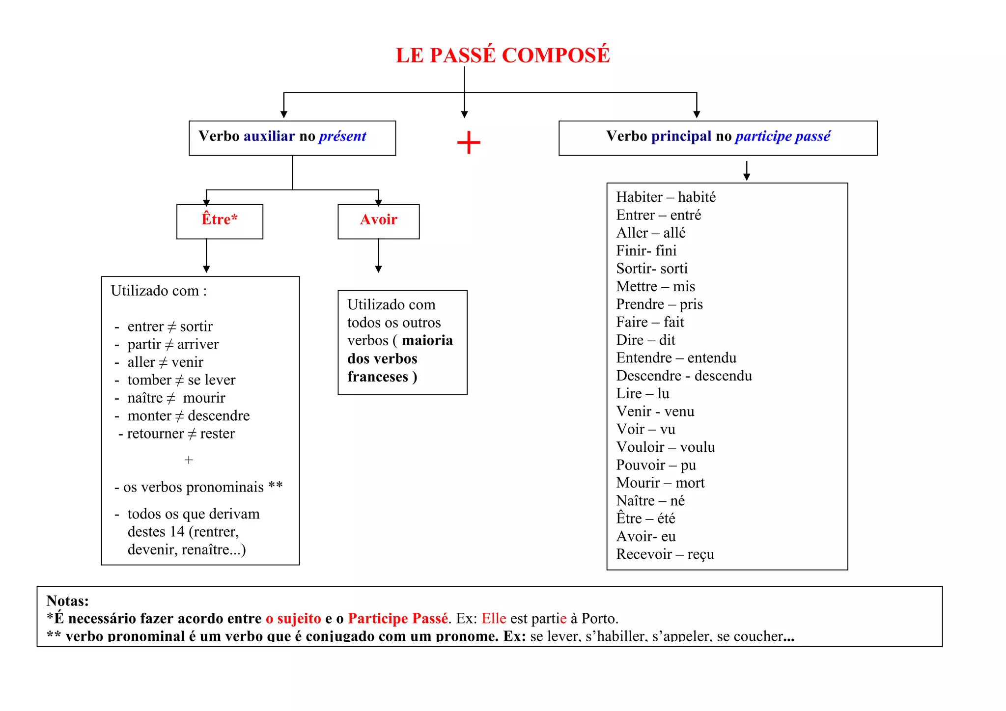 Le document traite de l'utilisation du passé composé en français, en mettant l'accent sur l'auxiliaire et le participe passé. Il explique les différences entre certains verbes, ainsi que l'accord entre le sujet et le participe passé. Des exemples de verbes conjugués sont également fournis.