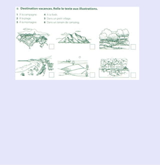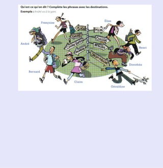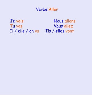 Le document traite de l'apprentissage de la conjugaison du verbe 'aller' et de l'expression des activités quotidiennes liées au temps. Il aborde également les différentes saisons et leur impact sur les sensations et activités. Des exercices de complétion et de reformulation sont inclus pour renforcer l'apprentissage.