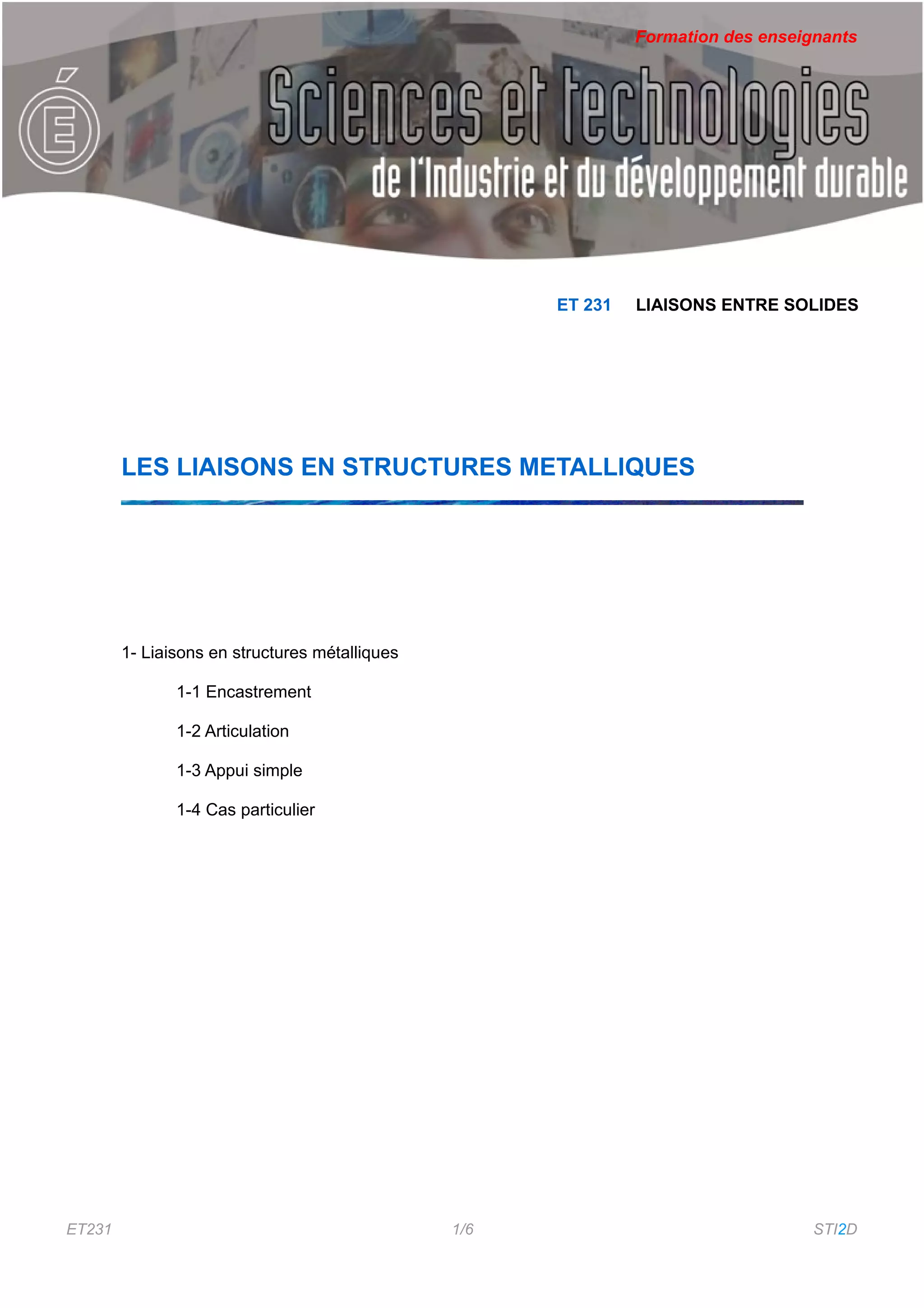Le document traite des liaisons en structures métalliques, en détaillant trois types principaux : l'encastrement, l'articulation et l'appui simple. Des exemples pratiques illustrent chaque type de liaison, leur modélisation, ainsi que les considérations de conception nécessaires pour assurer la résistance et la rigidité des structures. Les aspects techniques concernant les efforts et les éléments de liaison sont également abordés pour guider les concepteurs dans leurs réalisations.