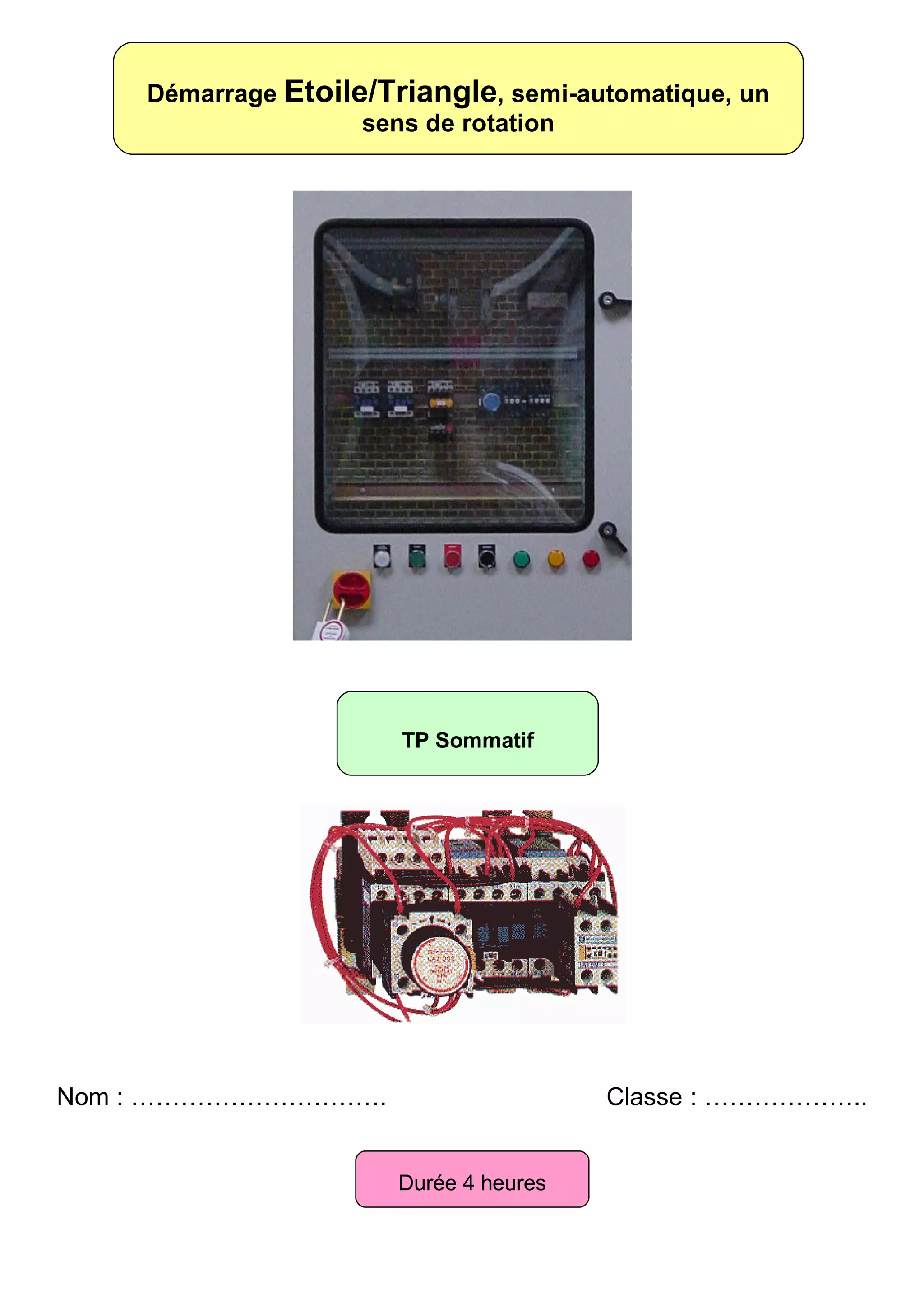 Le document présente un guide pratique pour le démarrage étoile-triangle d'un moteur électrique, permettant de réduire l'intensité et le couple lors de la mise en marche pour éviter une surcharge. Il décrit le fonctionnement du système avec des schémas, des étapes de démarrage et d'arrêt, ainsi que l'importance d'une condamnation mécanique entre les contacteurs. De plus, il inclut des critères d'évaluation pour les travaux pratiques liés à cette technique.