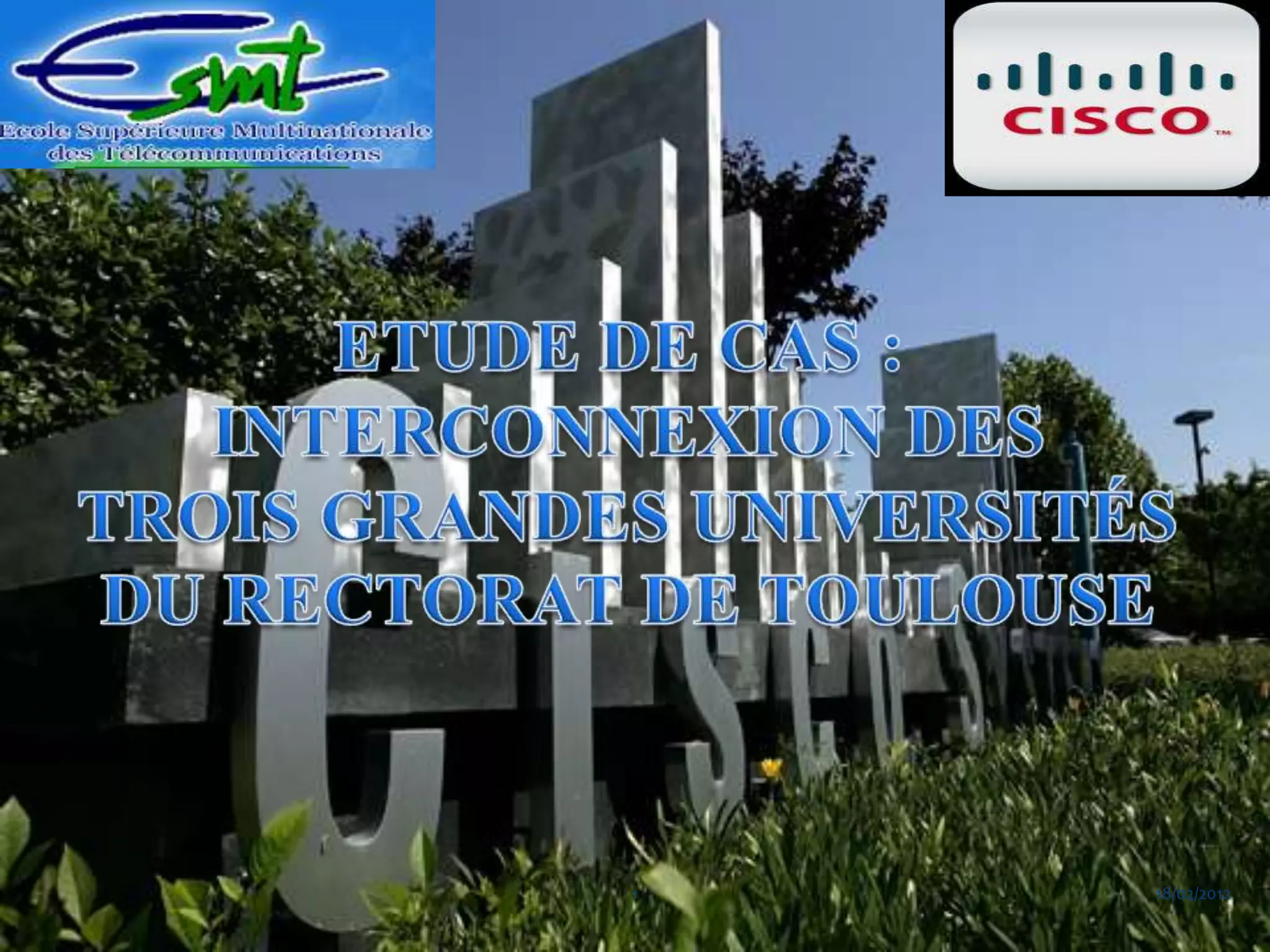 Ce document présente un projet de mise en œuvre d'une architecture réseau pour le rectorat de Toulouse, comprenant des réseaux locaux (LAN) sur 33 sites et un réseau étendu (WAN). Il détaille les spécifications techniques, les équipements nécessaires, ainsi que les considérations de sécurité et les coûts associés au projet. La solution vise à fournir une infrastructure évolutive et administrable à distance, en prévoyant des mesures de sécurité adaptées aux besoins des utilisateurs.