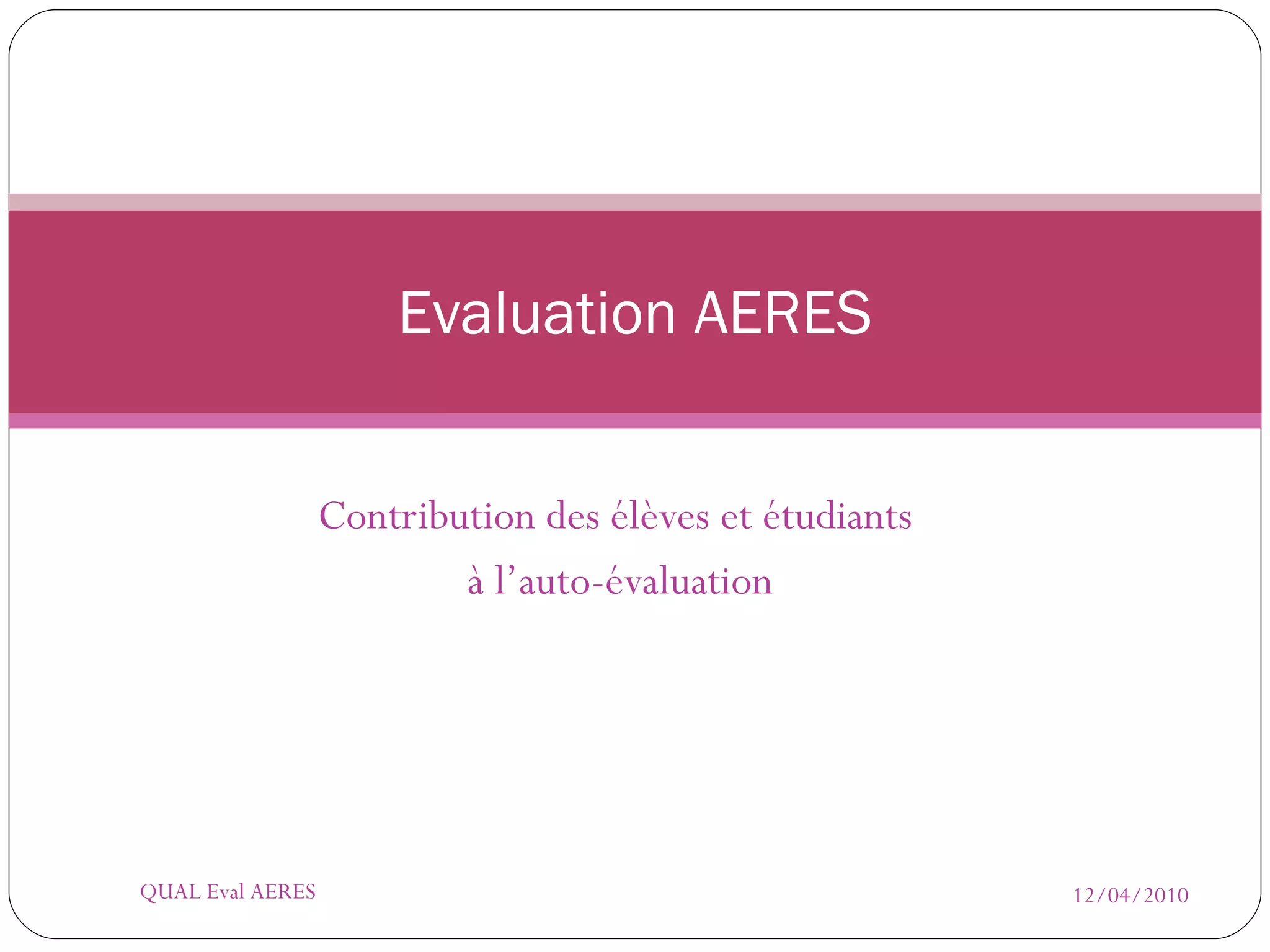 Le document traite de l'auto-évaluation des établissements d'enseignement supérieur selon le cadre défini par l'AERES, incluant le calendrier des évaluations et les différentes phases de sensibilisation, préparation, audit et production de rapports. Il souligne la contribution des élèves, enseignants et administratifs dans le processus d'amélioration de la qualité. Enfin, il détaille les stratégies à auditer et les objectifs d'amélioration à court terme pour la période 2012-2015.