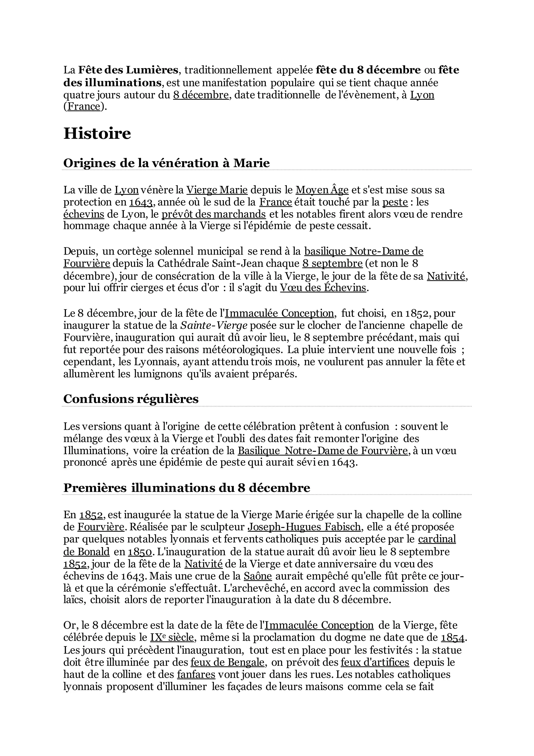 La fête des lumières à Lyon est une tradition populaire célébrée chaque année autour du 8 décembre, débutée en 1852 pour honorer la vierge Marie. Depuis, les lyonnais illuminent leurs fenêtres avec des lumignons et la fête a pris une ampleur internationale, attirant des millions de visiteurs. Parallèlement, le festival annuel Nuits Sonores, organisé depuis 2002, met en avant les cultures électroniques dans des lieux emblématiques de la ville.
