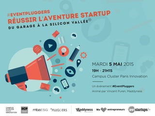 L'événement #eventpluggers qui se tiendra le 5 mai 2015 à Paris abordera l'entrepreneuriat et la création de startups, attirant de jeunes diplômés désireux d'indépendance. Des experts partageront des conseils sur les étapes clés pour réussir, trouver des investisseurs, et naviguer dans l'écosystème des startups. La conférence sera animée par Vincent Puren et inclura des intervenants de divers secteurs pour discuter des enjeux et opportunités liés à la création d'entreprise.