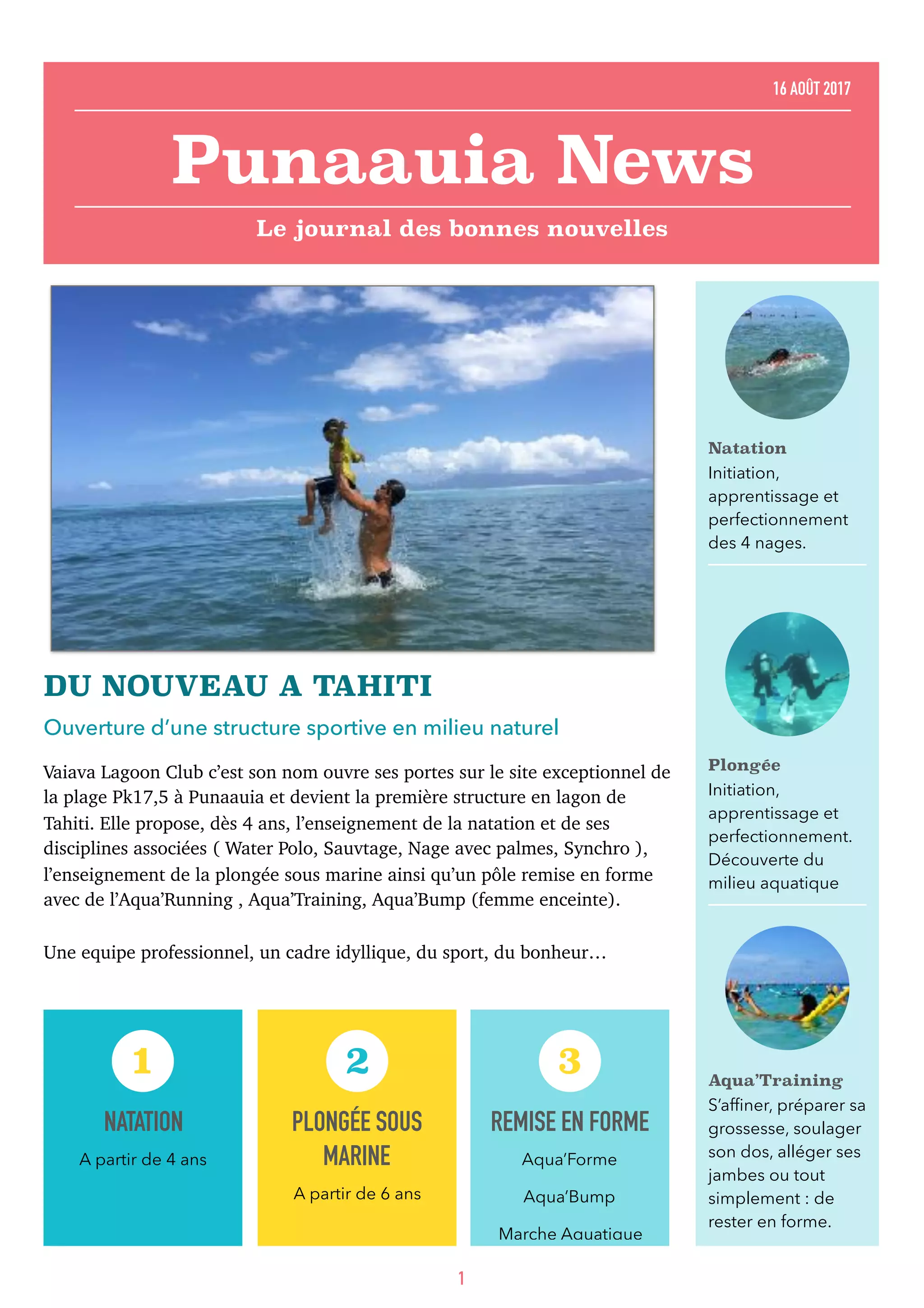 Le Vaiava Lagoon Club, situé à Punaauia sur la plage PK17,5, est la première structure en lagon de Tahiti, offrant des cours de natation, plongée sous-marine et remise en forme dès l'âge de 4 ans. Les activités incluent le water-polo, le sauvetage, la nage avec palmes, ainsi que des programmes spécifiques pour les femmes enceintes. L'établissement se distingue par son cadre exceptionnel et une équipe professionnelle dédiée à l'enseignement et au bien-être.