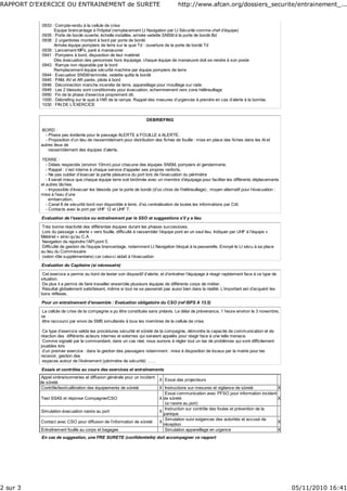 Le rapport présente un exercice de sûreté simulant une alerte à la bombe à bord d'un navire, impliquant plusieurs équipes et procédures coordonnées. Les événements sont détaillés chronologiquement, depuis le briefing initial jusqu'à la débriefing final, soulignant les défis rencontrés et les leçons apprises. L'exercice a permis d'évaluer la réactivité des équipes face à des situations d'urgence, validant ainsi les protocoles de sécurité établis.
