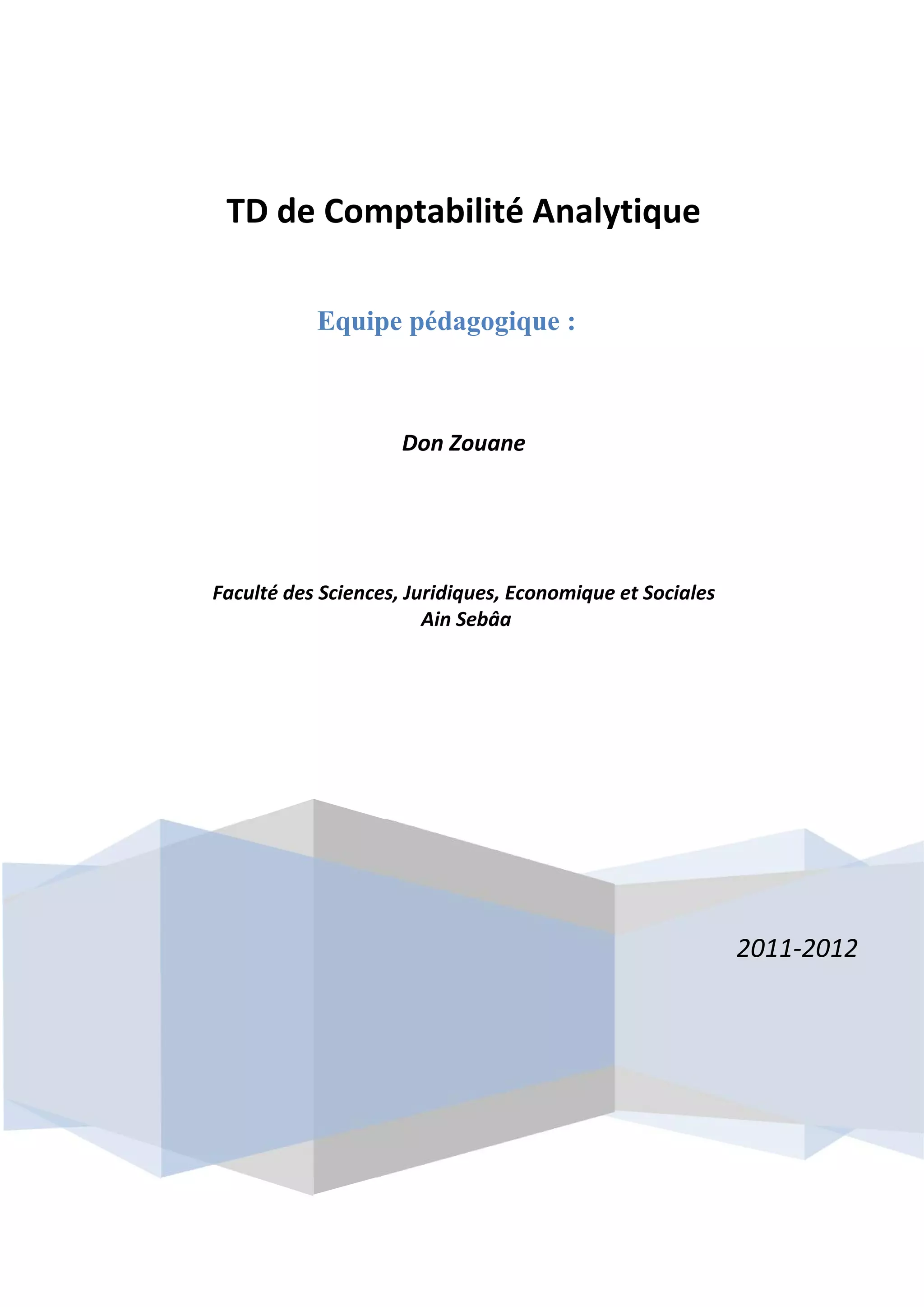 Le document présente plusieurs exercices de comptabilité analytique portant sur différentes entreprises, chacune illustrant un aspect particulier de la répartition des charges indirectes et du calcul des coûts. Il inclut des données financières pour des exercices sur des sociétés fictives, telles que la gestion de charges et de coûts de production, ainsi que des estimations de résultats. L'objectif principal est d'apprendre à établir des tableaux de répartition et à calculer les coûts de revient des produits fabriqués.