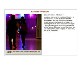 Le document aborde des expressions de la langue française et souligne leur importance culturelle. Il met en avant la richesse et la diversité de la langue. L'ensemble vise à enrichir la connaissance linguistique des lecteurs.