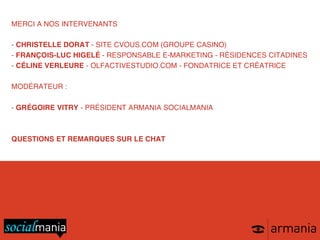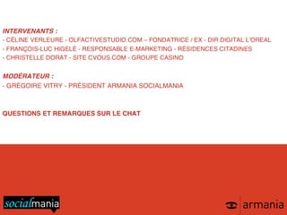Le document présente une série de formations sur la création et la gestion efficace d'un site internet, abordant des thèmes tels que la conciliation entre site vitrine et e-commerce, ainsi que la gestion de sites dans un contexte international. Les intervenants proposent des conseils pratiques pour optimiser le contenu, l'ergonomie et la stratégie marketing des sites. La conclusion souligne l'évolution du marketing digital vers une approche basée sur les flux, avec une intégration accrue des réseaux sociaux et des applications mobiles.