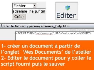 Pour insérer un script tiers dans votre page, créez un document via l'onglet 'mes documents' de l'atelier. Éditez le document pour y coller le script et enregistrez-le. Utilisez l'objet 'fenêtre' pour sélectionner le fichier créé.