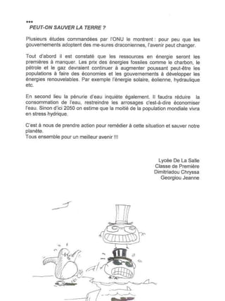 Les lycéens du collège de la Salle de Thessalonique prennent part à la 18ème Semaine de la Presse et des Médias. L'événement coïncide avec la 5ème édition de la Semaine du Développement Durable. Le thème souligne l'importance de vivre ensemble et autrement.