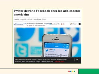 Le document traite des réseaux sociaux numériques, en expliquant leur nature, leur fonctionnement et leur impact sociétal. Il mentionne des plateformes populaires comme Facebook, Twitter, et Google+, tout en fournissant des statistiques sur leur utilisation mondiale et en France. De plus, il aborde des aspects liés à la confidentialité des données et aux conditions d'utilisation de ces services.