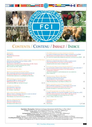 Le document aborde divers sujets liés à la cynologie, y compris la Coupe d'Europe pour chiens d'arrêt continentaux, l'alimentation saine pour les chiens et la journée internationale des chiens de sauvetage. Il met en évidence la collaboration entre l'organisation internationale de chiens de sauvetage et la FCI pour promouvoir la formation et l'évaluation des chiens de secours. De plus, il évoque les conditions difficiles rencontrées lors des compétitions canines et propose des réflexions sur l'amélioration de l'apétibilité des aliments pour animaux.