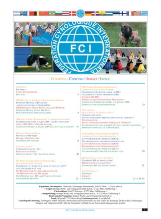 Le magazine de la Fédération Cynologique Internationale (FCI) présente un récapitulatif des événements importants de 2009, y compris le championnat d'Europe de course et l'exposition mondiale à Bratislava, qui a attiré 30 000 chiens et établi un record du monde. Le document souligne les défis rencontrés par les organisateurs malgré leur succès, ainsi que les conseils nutritionnels pour les chiots. En outre, il exprime des remerciements aux anciens et aux nouveaux membres du conseil de la FCI.