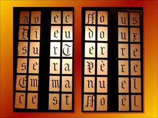 Le document traite des traditions de Noël en Alsace, notamment des fenêtres de l'Avent, en liant ces éléments aux quatre évangiles et aux figures bibliques mentionnées dans le livre de l'Apocalypse. Chaque évangile est associé à un animal symbolique qui illustre ses thèmes et son commencement. Le texte se termine par des vœux de joyeuses fêtes de Noël.