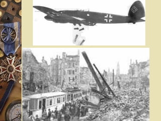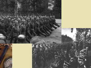 Le document retrace les événements marquants de la Seconde Guerre mondiale, depuis l'invasion de la Pologne en 1939 jusqu'à la capitulation japonaise en 1945. Il aborde les phases clés du conflit, notamment la drôle de guerre, les offensives sur divers fronts, et les succès de l'Axe. Enfin, il souligne le tournant de la guerre en faveur des Alliés avec des dates et des points précis de l'histoire.