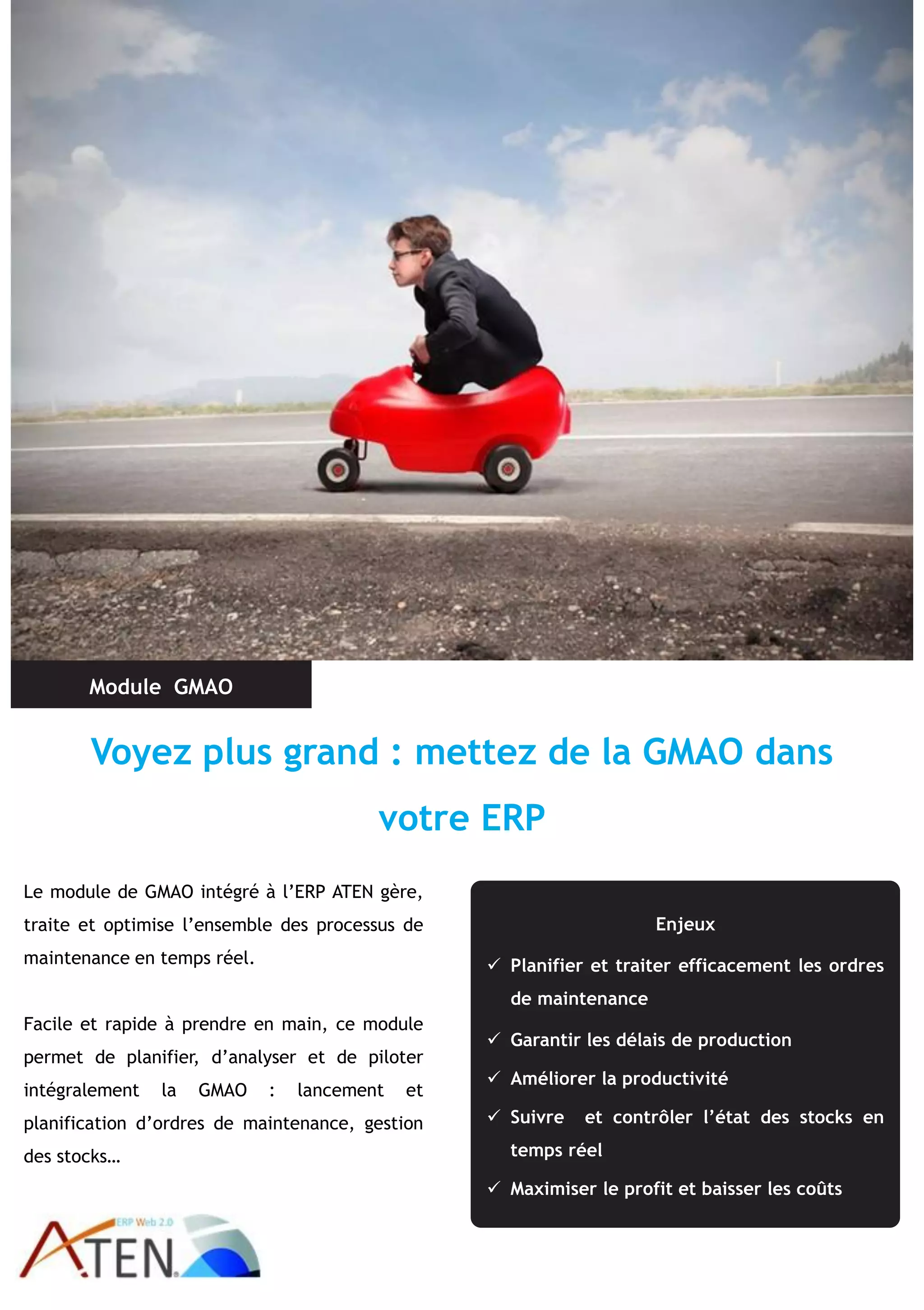 Le module de GMAO intégré à l'ERP Aten permet de gérer et optimiser les processus de maintenance en temps réel, favorisant la planification et le traitement des ordres de maintenance pour améliorer la productivité et la gestion des stocks. Imagina International est à la fois éditeur et intégrateur de cette solution, offrant une expertise complète et une assistance aux entreprises en croissance. Les fonctionnalités incluent la planification automatique des interventions, le suivi en temps réel, et l'analyse des performances via des outils de business intelligence.