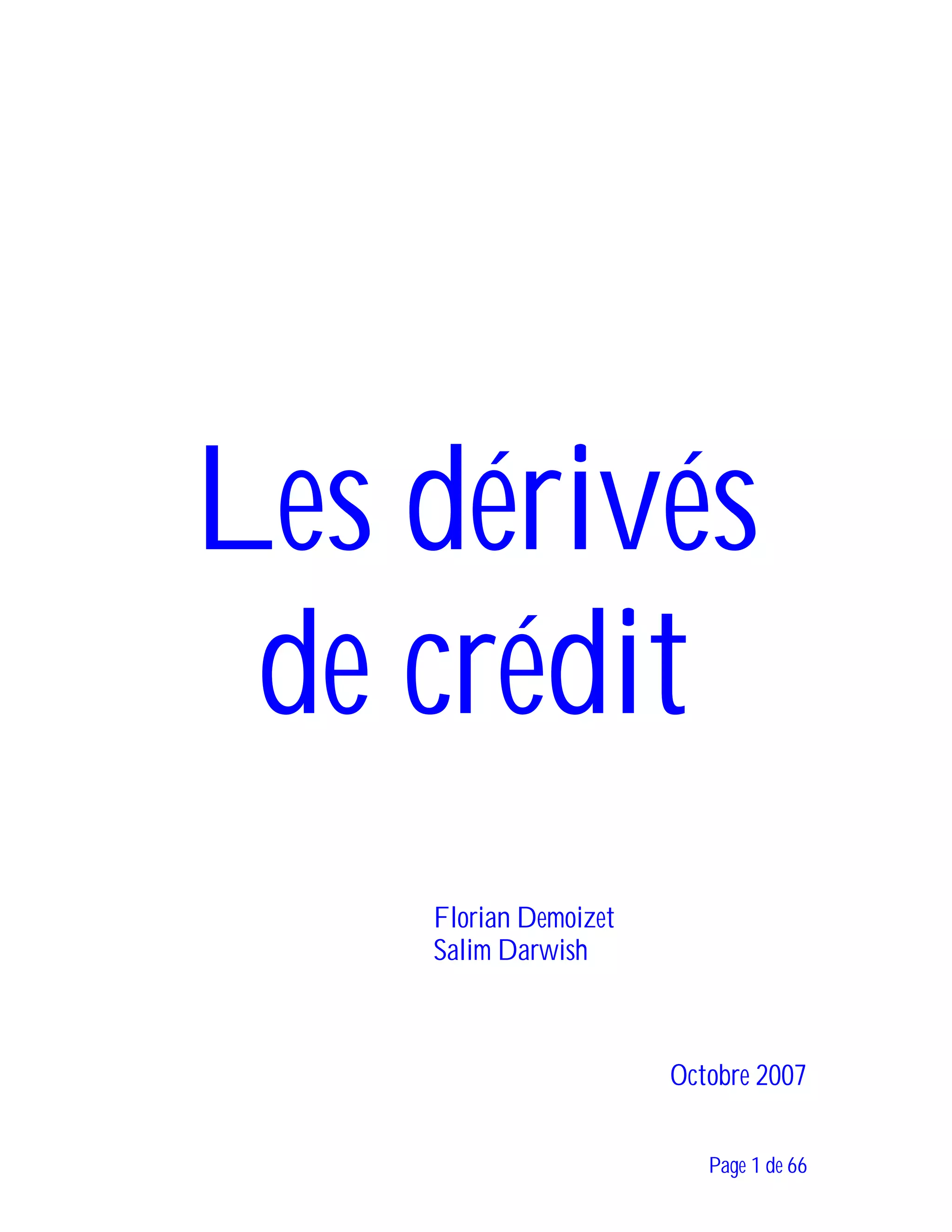 Le document présente une analyse approfondie des produits dérivés de crédit, en explorant leur développement, leur utilisation et leur valorisation par différents acteurs, notamment les banques, investisseurs et entreprises. Il met en lumière les enjeux du risque de crédit, le capital économique et réglementaire, ainsi que l'impact des conditions de marché et réglementaires sur la croissance de ces instruments financiers. Enfin, une attention particulière est portée sur les crises financières liées à ces produits, illustrant des comportements d'investissement imprudents.