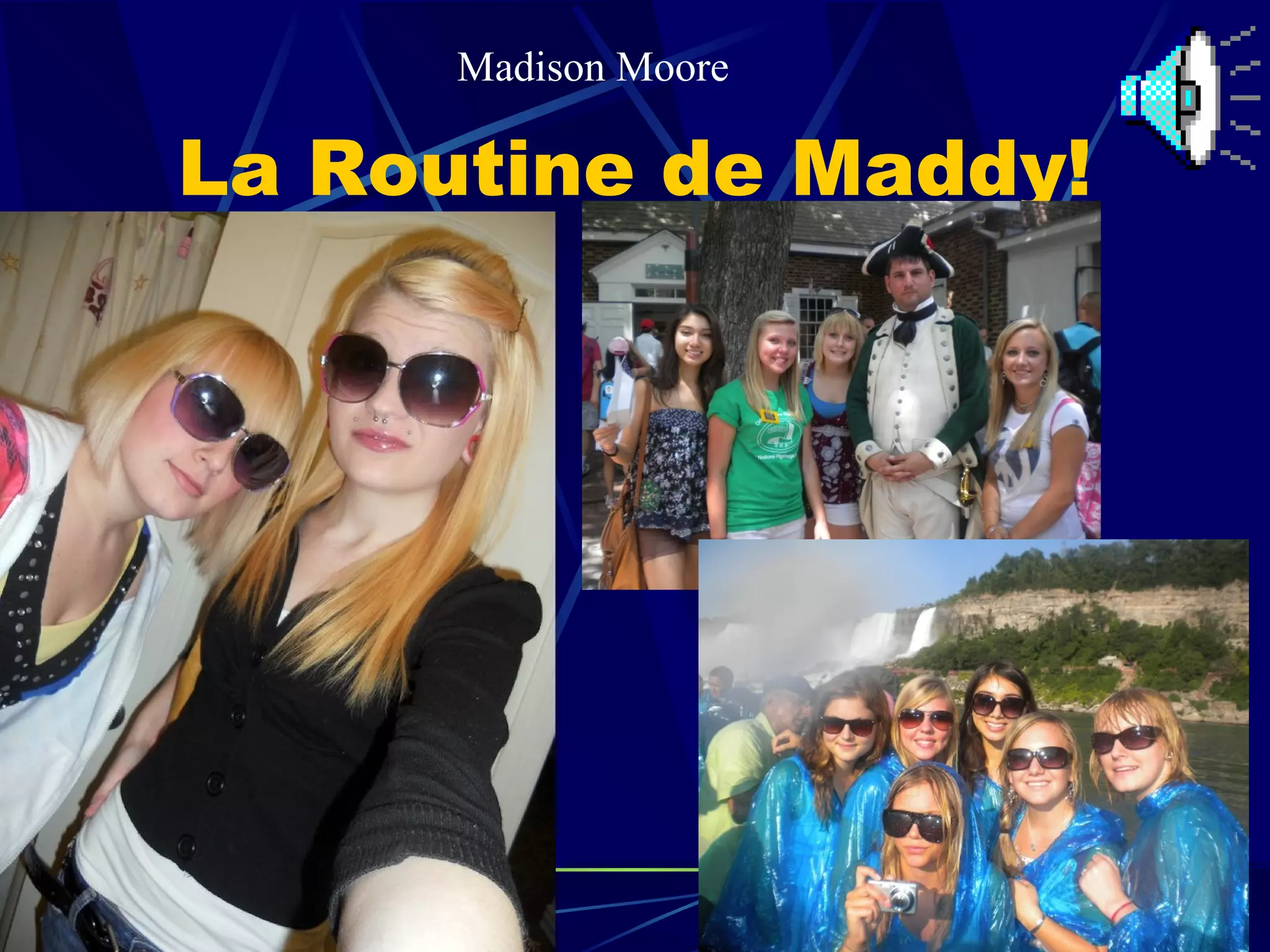 Maddy se réveille à 7 heures du matin et commence sa journée avec des crêpes pour le petit déjeuner. Elle assiste à l'école pour apprendre le français, fait de l'exercice à la gym, et travaille chez Wendy's le soir avant de se coucher à onze heures et demie. Sa routine quotidienne inclut des repas avec des amis et des soins personnels.