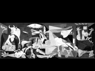 Pablo Picasso, né en 1881 en Espagne, est un peintre célèbre pour sa période bleue et rose, et pour sa grande œuvre 'Guernica', créée en réaction à la destruction de la ville basque de Guernica pendant la guerre civile espagnole en 1937. 'Guernica' illustre la violence et la souffrance causées par la guerre à travers des personnages et des animaux extractés d'une scène de désespoir. Cette peinture, réalisée en noir, gris et blanc, évoque des émotions puissantes telles que la peur et la douleur.