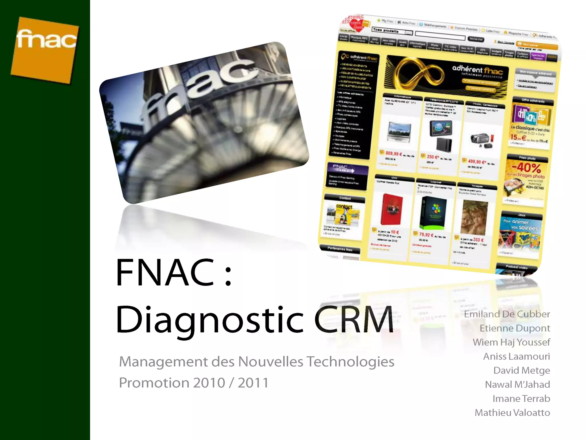 La Fnac, créée en 1954, est un acteur majeur du commerce en France avec un chiffre d'affaires de 4,5 milliards d'euros et 20 000 salariés, se concentrant sur l'expérience client à travers une carte de fidélité. Face à une concurrence croissante des pures players en e-commerce, la Fnac doit renforcer sa stratégie CRM pour fidéliser ses clients et retransformer ses espaces de vente physiques en communautés. Des initiatives comme le chat en ligne avec des conseillers visent à améliorer l'engagement des clients au-delà de l'achat traditionnel.