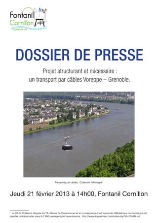 Le projet de transport par câbles entre Voreppe et Grenoble vise à résoudre les problématiques de congestion automobile en offrant une alternative de transport novatrice et écologique. Il propose un système de téléphérique bi-câbles débrayable capable de transporter jusqu'à 4 000 personnes par heure, permettant ainsi de désengorger les axes routiers saturés. Le coût estimé de ce projet est de 120 millions d'euros pour 10 kilomètres, bien inférieur à celui d'un tram au sol.
