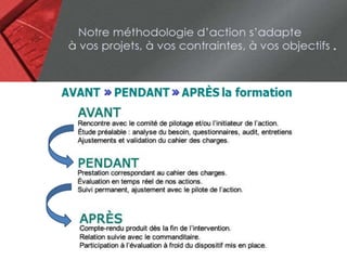 L'équipe est composée de consultants formateurs et d'experts pratiquant dans divers domaines de la santé. Elle inclut infirmières, médecins, psychologues et kinésithérapeutes, entre autres. Leur expérience se déploie au sein d'établissements pour personnes âgées.