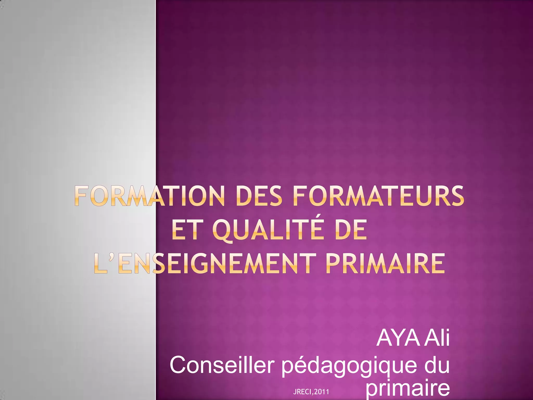 Le document analyse l'impact de la formation des formateurs sur la qualité de l'enseignement primaire en Côte d'Ivoire, en mettant en lumière des lacunes significatives dans ce système de formation. Les résultats révèlent des inadéquations entre les diplômes des stagiaires et les exigences pédagogiques, ainsi qu'un environnement scolaire peu stimulant. La discussion conclut sur une dégradation de la profession d'instituteur et une baisse de la qualité de l'éducation, remettant en question la pertinence des enseignants.