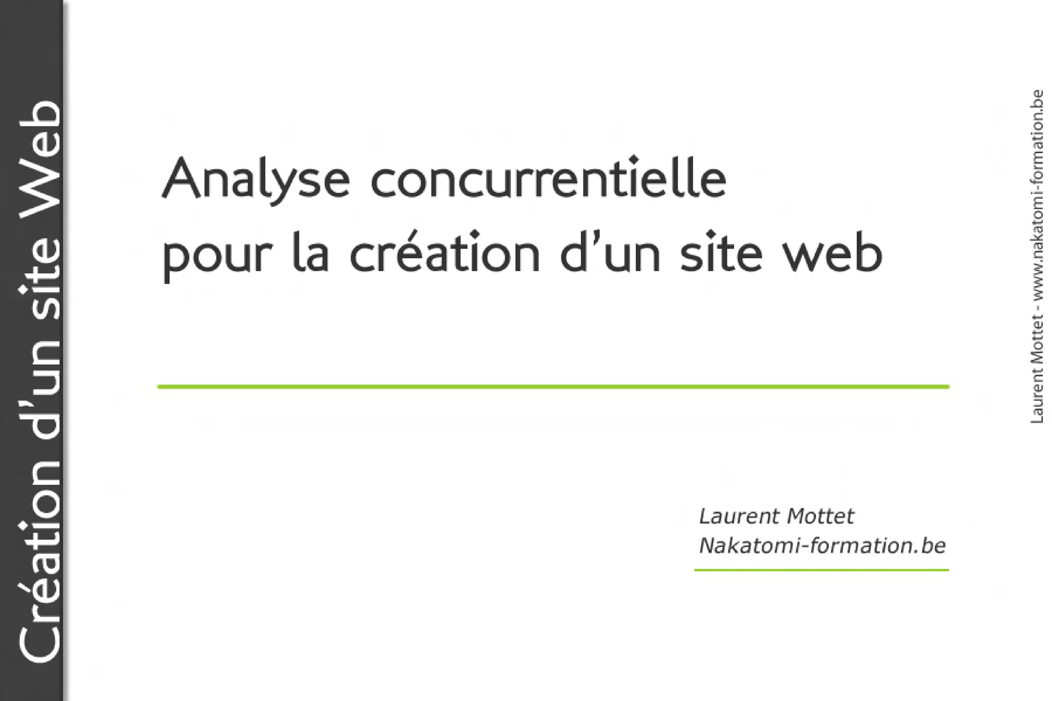 L'analyse concurrentielle permet d'étudier les sites concurrents pour identifier leurs forces et faiblesses, découvrant des éléments tels que l'offre de produits, les prix et les stratégies de communication. Bien que cette méthode soit économique et facile à mettre en œuvre, elle ne prend pas en compte les besoins des utilisateurs finaux. Ce processus est crucial pour le positionnement efficace d'un site web.