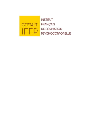 Le document présente une formation certifiante en gestalt thérapie organisée par l'institut français de formation psychocorporelle (gestalt IFFP) visant à former des praticiens et thérapeutes. Il détaille la philosophie de la gestalt thérapie, qui privilégie l'expérience présente et l'intégration des dimensions psychologiques et corporelles, ainsi que le contenu et l'organisation des différents cycles de formation. Les formations sont accréditées et s'adressent à toute personne souhaitant se former dans le champ de la relation d'aide et de la psychothérapie.