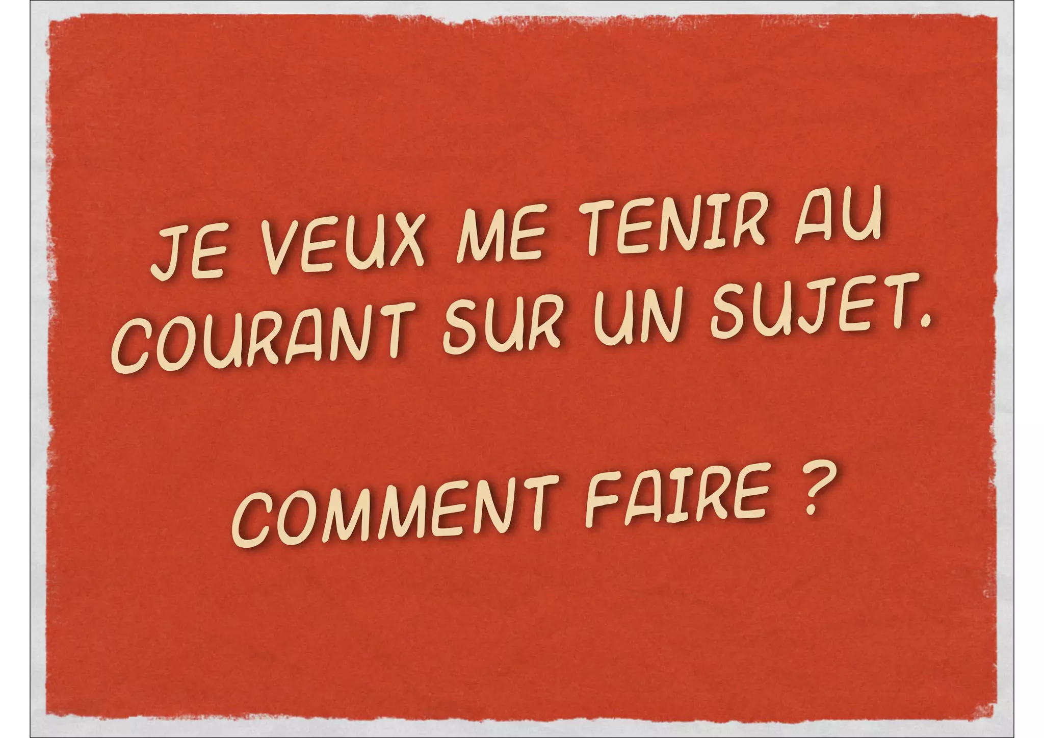 Le document explique comment utiliser le RSS et des outils comme Google Reader et Instapaper pour suivre des informations sur un sujet. Il détaille les étapes pour s'abonner aux sources d'info, lire les articles publiés et exploiter les informations intéressantes. Enfin, il propose d'utiliser Instapaper pour mémoriser des pages à lire ultérieurement.