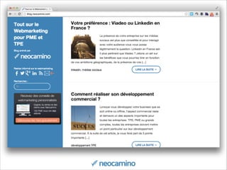Le document explique l'importance de disposer d'un site internet pour les entreprises afin d'attirer de nouveaux clients, d'accroître leur notoriété et de fidéliser les clients existants. Il met en avant le rôle crucial du référencement et des médias sociaux pour transformer les visiteurs en ventes, tout en soulignant l'importance de créer un contenu pertinent et engageant. Enfin, il présente Neocamino, un logiciel de webmarketing conçu pour aider les PME à améliorer leur visibilité en ligne.