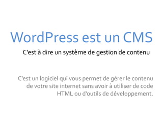 WordPress est un CMS gratuit et flexible, permettant de gérer le contenu d'un site sans compétences techniques. Il nécessite un serveur compatible avec PHP et MySQL, et peut être installé localement pour familiarisation. Pour une utilisation optimale, il est essentiel de définir le contenu et l'architecture du site avant de commencer la création.